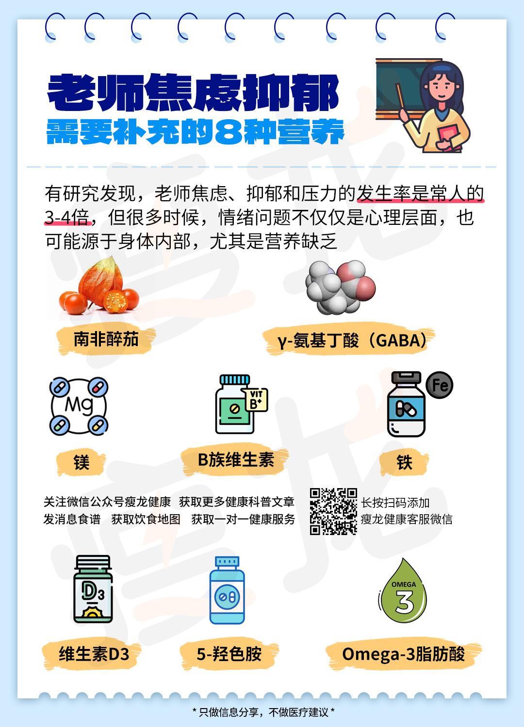 - - 阅 11有研究发现,老师焦虑、抑郁和压力的发生率是常人的3-4倍,但很多时候,情绪问题不仅仅是心理层面,也可能源于身体内部,尤其是营养缺乏