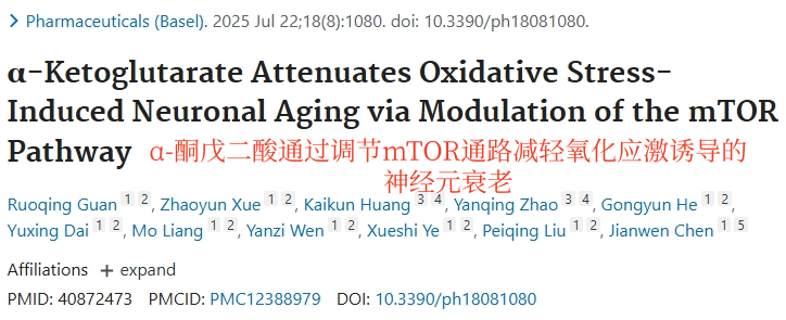 氧化应激是衰老、神经退行和多种慢性病的重要原因。AKG 的这种作用使它成为一个潜在的 “代谢-抗氧化,双功能”干预剂。