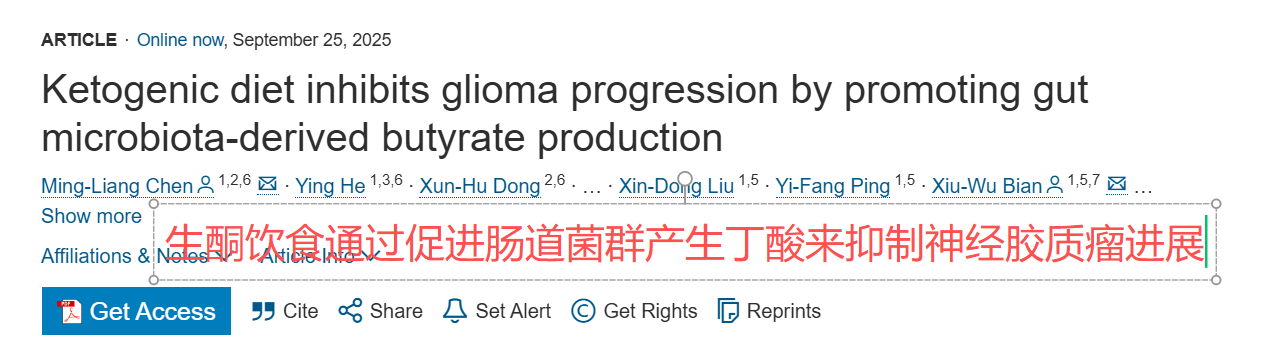 最近,一项发表在顶级期刊Cancer Cell的中国研究让人眼前一亮。研究发现生酮饮食能通过改变肠道菌群,抑制胶质瘤(脑瘤中最狠的一种,5年生存率不足10%)。①