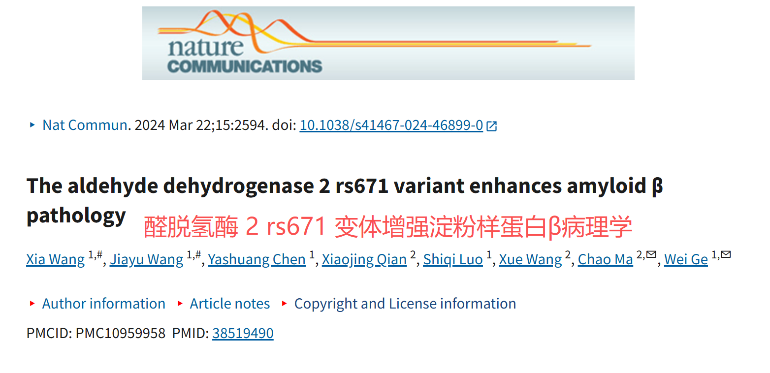 一项发表于 Nature 的研究发现,携带ALDH2 rs671变异的喝酒脸红人群,大脑中 AD 关键病理标志——Aβ斑块显著增多。②