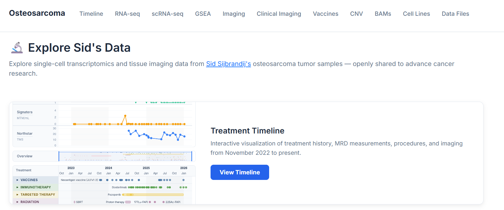 Sid把整个治疗过程透明化,建立了超过1000页的详细健康笔记,把单细胞测序、RNA测序等原始数据(总计25TB)全部公开在网站上,欢迎全球研究者免费使用。③