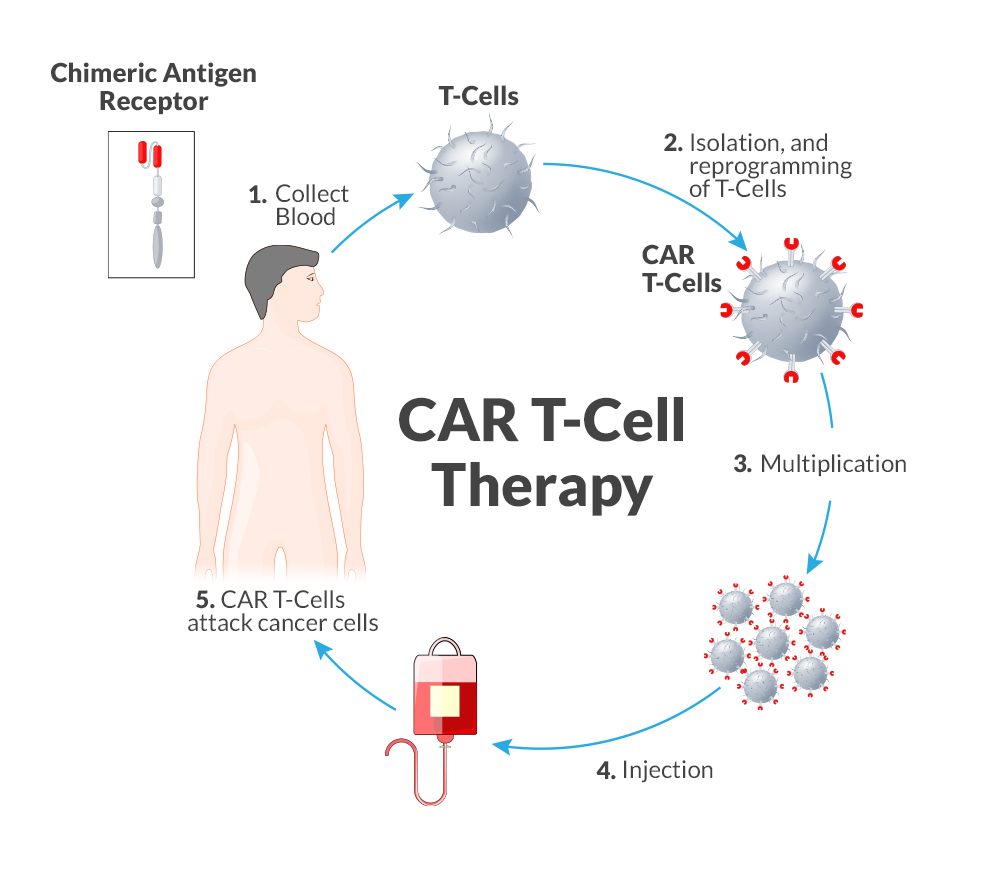 它的原理是医生从患者血液中采集自身的T细胞(免疫系统中的杀手细胞),在实验室里通过基因工程给它们安装一个特殊的导航头称为CAR受体)。