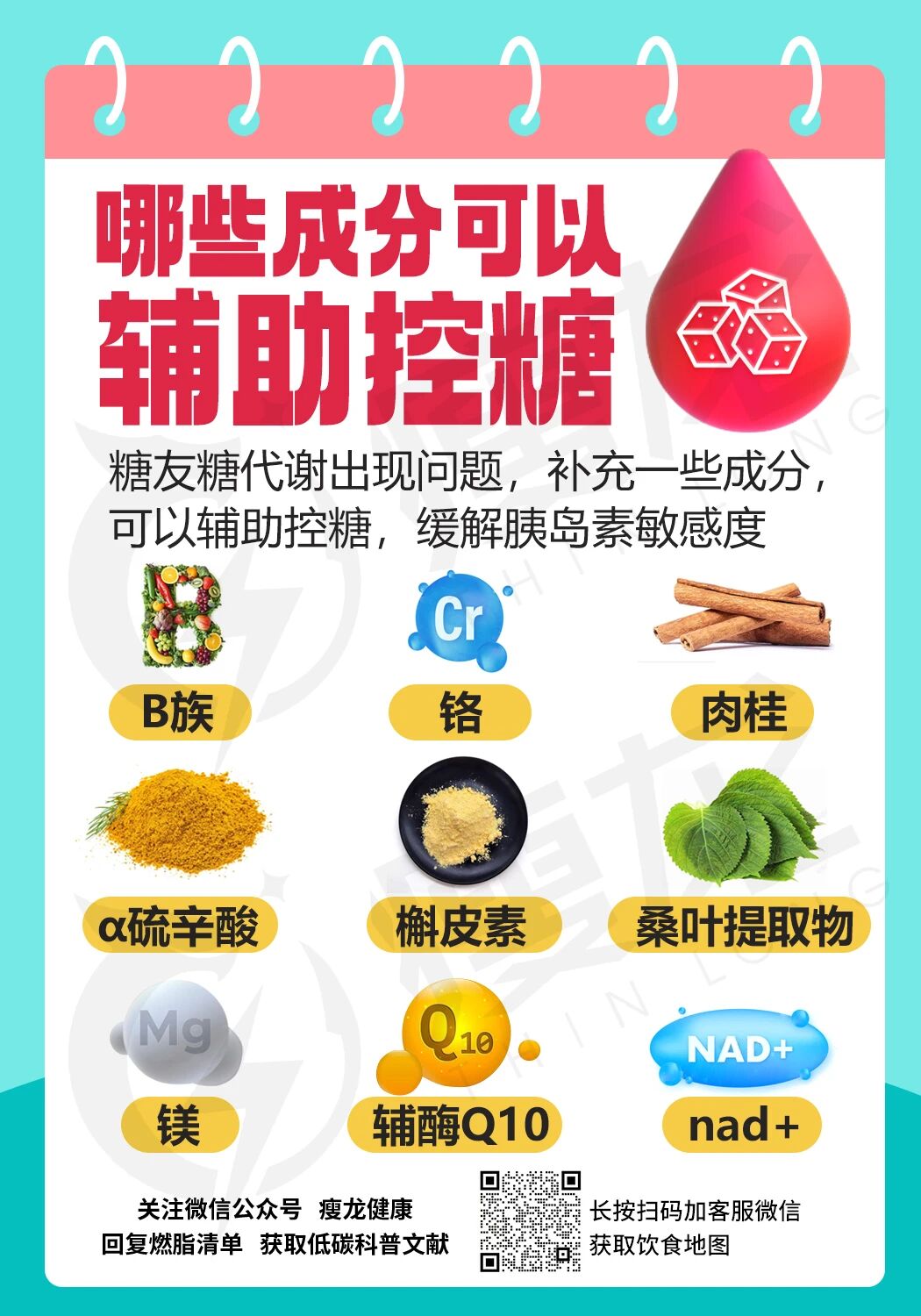 还有一些营养,像B族、肉桂、镁等,能够辅助控糖,提升胰岛素的敏感度。