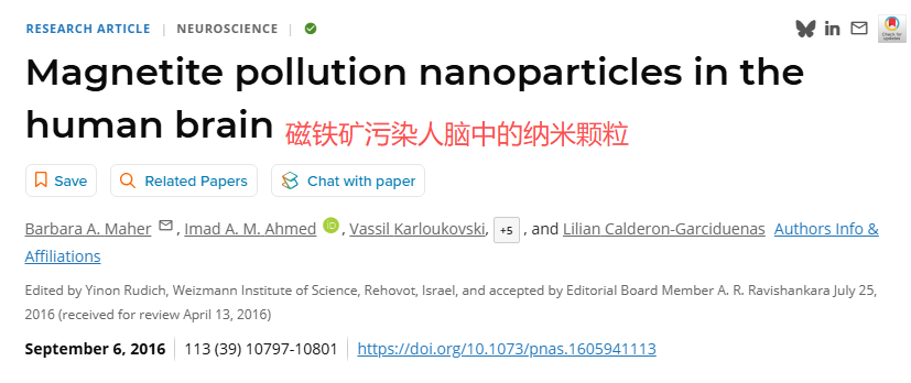 磁铁矿纳米颗粒大小通常在几十到200纳米以下,小到能轻松穿过呼吸道的屏障,甚至直接从鼻子里的嗅神经钻进大脑(绕过血脑屏障)。