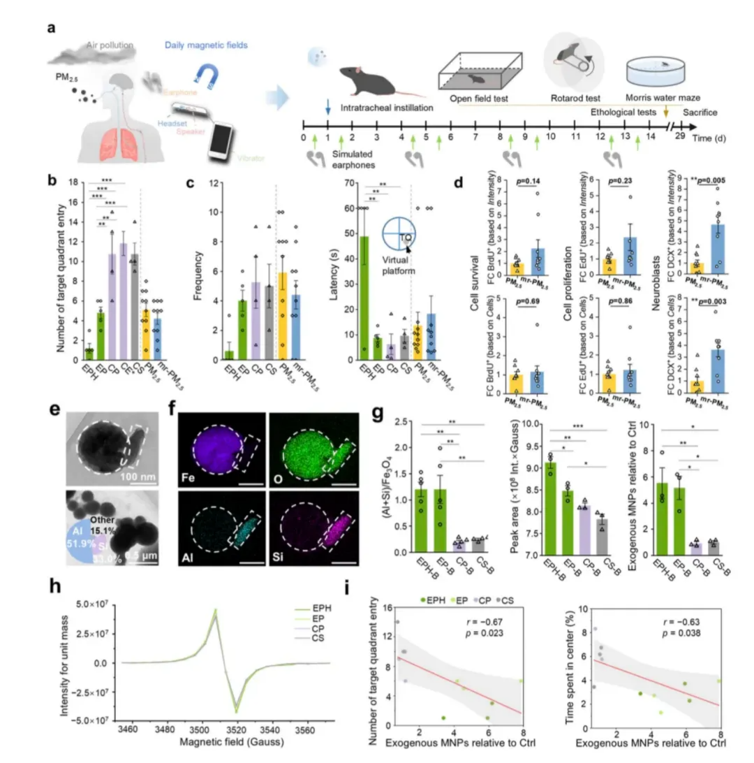 研究团队还设置对照组,用非磁性铁氧化物纳米颗粒(α-Fe₂O₃)或去磁的PM2.5颗粒(PM2.5是直径小于或等于2.5微米的细颗粒物,去磁后磁性减弱)。