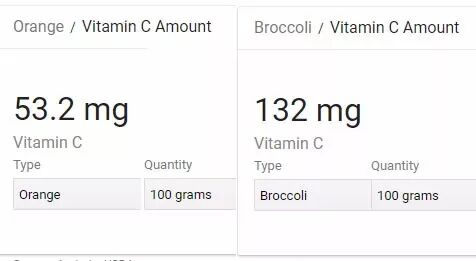 以100克为例,橘子的维生素C含量为53.2毫克,而西兰花的维生素C含量为132毫克,完爆橘子的节奏。