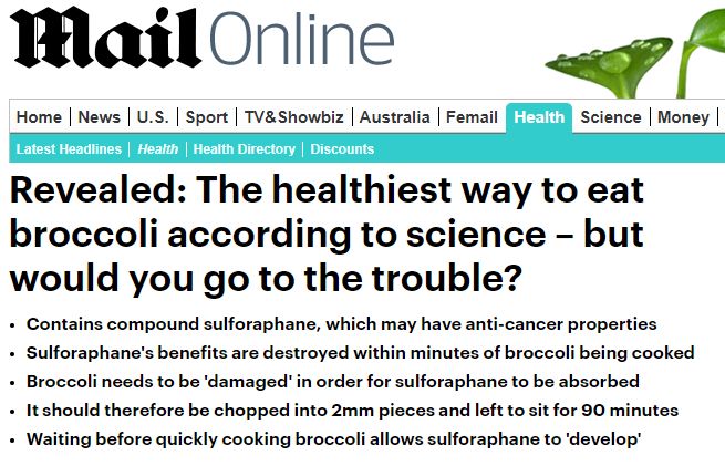 研究人员解释说,将西兰花充分剁碎,并暴露在空气中,可以使得活化酶促进萝卜硫素水平,不过一般做饭,不用像试验一样,放置90分钟,放置30分钟以上即可。