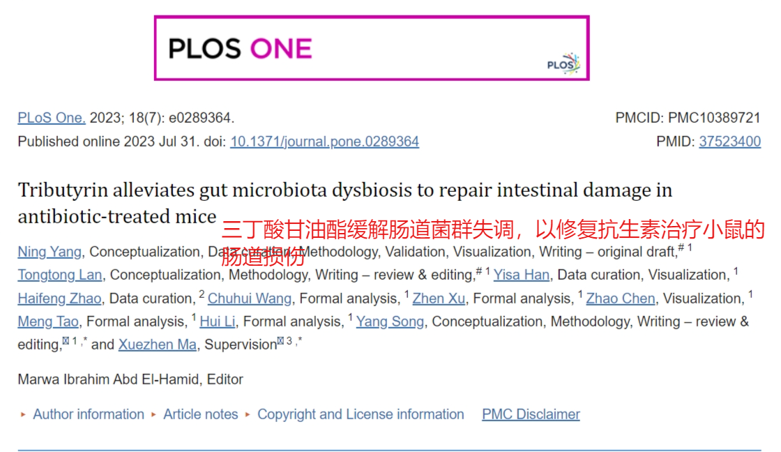 研究人员发现,补充三丁酸可以缓解抗生素引起的体重减轻、腹泻和肠道组织损伤。②