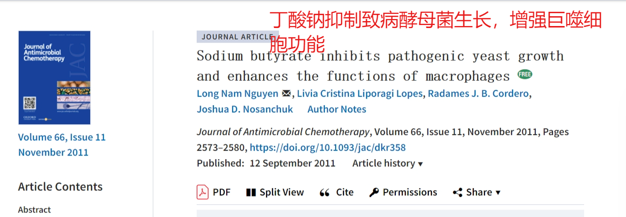 丁酸钠(SB)通过增强活性氧的产生来增强巨噬细胞的抗真菌活性,让巨噬细胞的吞噬速率和杀伤活性显著增加,这与一氧化氮的原理是一样的。
