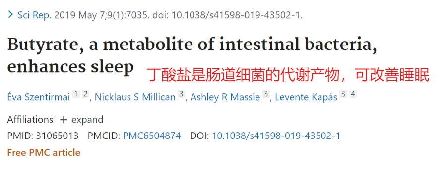 一项针对小鼠的研究发现,口服丁酸盐和门静脉注射丁酸盐在6小时内将非快速眼动睡眠增加了70%。⑧