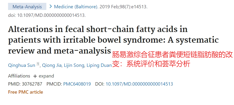 一项针对 15 项研究的荟萃分析发现,在IBS-C(以便秘为主要症状的肠易激综合症)中,粪便中的丁酸盐水平低于对照组。⑫