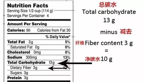 净碳水=总碳水-纤维,这也是我们在购物的时候,看营养成分表要注意的地方。