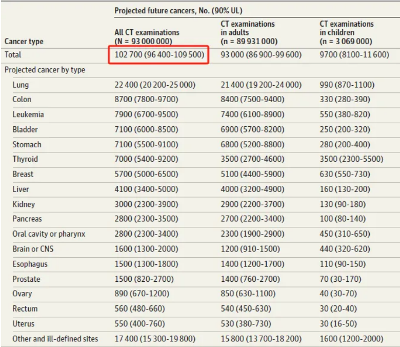 鉴于 CT 的使用量巨大,即使是非常小的癌症风险,也可能会导致未来出现大量癌症。