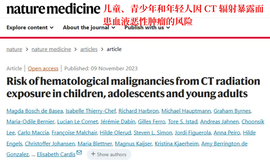 Nature上的一项研究也发现,儿童、青少年和年轻人因 CT 辐射暴露,患血液恶性肿瘤的风险上升。③