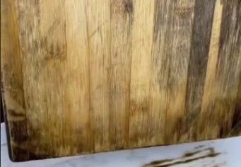 最后还有一种,拼接的竹制案板,因为内部有很大的缝隙,非常容易滋生霉菌细菌,不建议用这种案板。