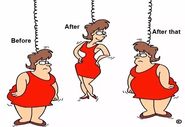 很多研究表明,通过极端的节食后瘦下去的人,在一年之内,30-65%的人,都会反弹回来,还有三分之一的人可能比之前还胖。②