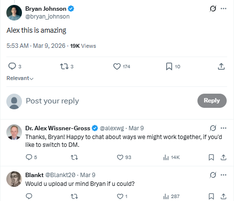著名物理学家、Eon Systems 创始顾问亚历克斯·威斯纳-格罗斯为此留下了一个铭记史册的评论: