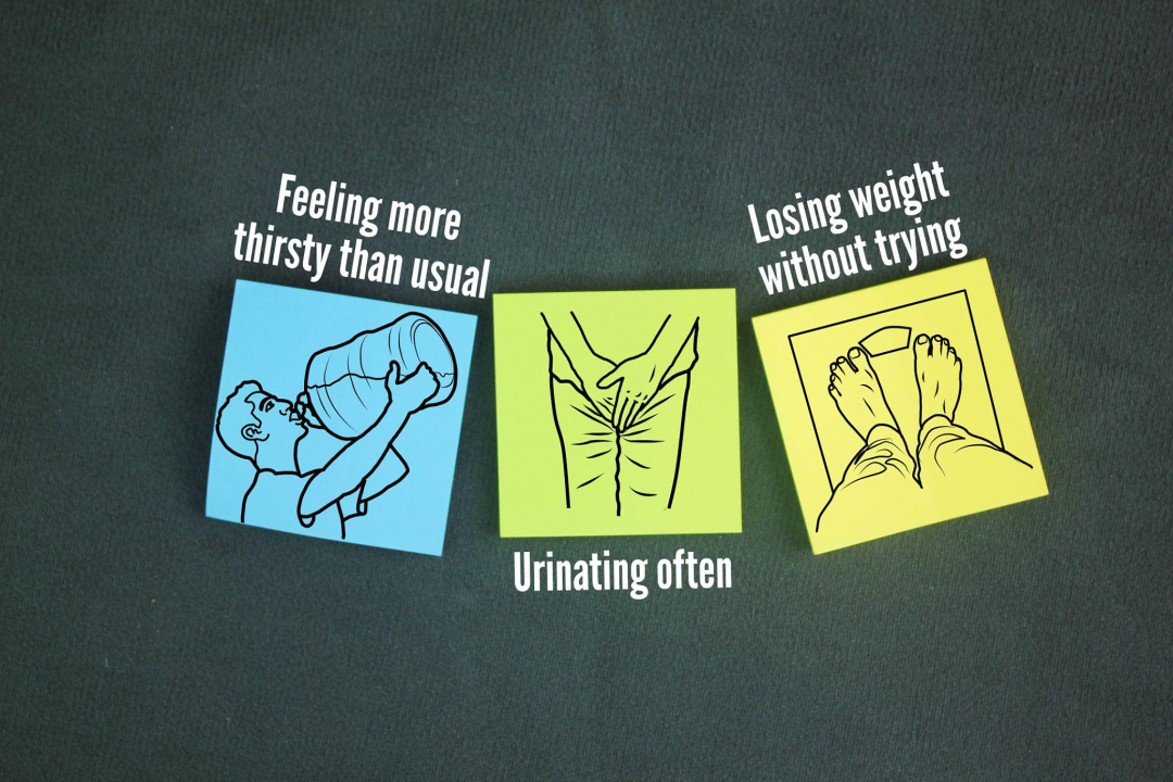 梅奥诊所指出,它的典型表现包括:极度口渴、频繁排尿、恶心、呕吐、腹痛、虚弱、呼吸急促,以及呼气出现水果味或烂苹果味,严重时甚至可能发展为昏迷。④