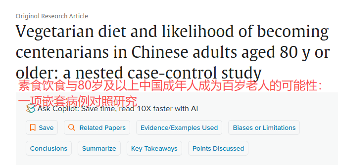 结果显示,与杂食者相比,素食者成为百岁老人的可能性低,纯素可能性最低。