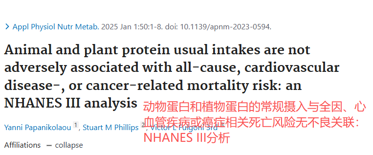 相比完全植物蛋白组,适量动物蛋白组在癌症防护上表现出潜在优势,对癌症死亡率具有轻微保护作用。
