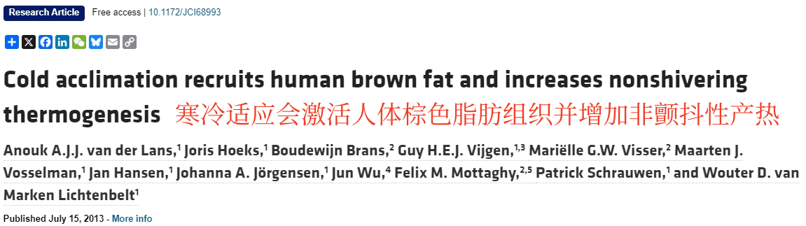 至于需要多冷才可以激活棕色脂肪,可以参考我之前的推文:冬天少穿一件衣服能减肥吗?温度多低才能激活棕色脂肪?