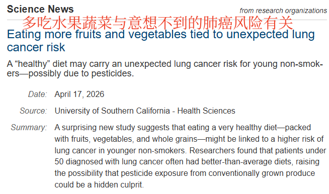这些数据放在一起,指向了一个令人不安的可能性:传统种植的农产品中残留的农药,可能是导致这部分人群肺癌风险升高的隐藏因素。