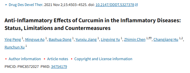 发表在《药物》(Pharmaceuticals)上的重磅综述指出,姜黄素能调节多种细胞因子(如 TNF-α, IL-6),对关节炎、肠炎等慢性炎症有显著的临床改善作用。①