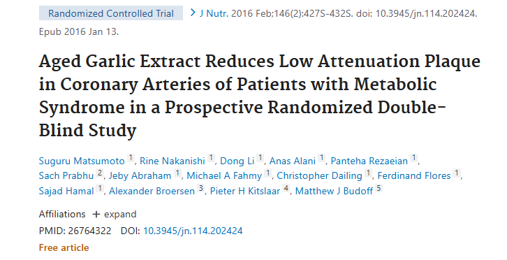 发表在《营养学杂志》(The Journal of Nutrition)上的随机双盲实验发现:长期摄入大蒜提取物甚至能逆转冠状动脉里的“软斑块”。