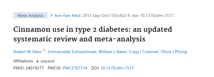 一项2013年的荟萃研究发现,每天摄入仅仅1-6克的肉桂,就能让2型糖尿病患者的空腹血糖降低18-29%,连带着甘油三酯和低密度脂蛋白(LDL)也跟着降了。④