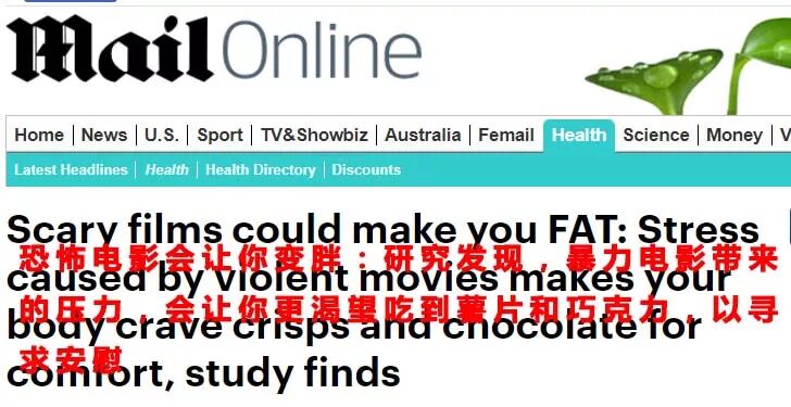 好吧,说直白点,看恐怖(暴力)电影,会让你发胖……