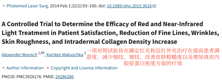 在《Photomedicine and Laser Surgery》上发表的一项受控试验中,研究者观察了 611-660nm 及 810-850nm 光线对皮肤纹理的影响。②