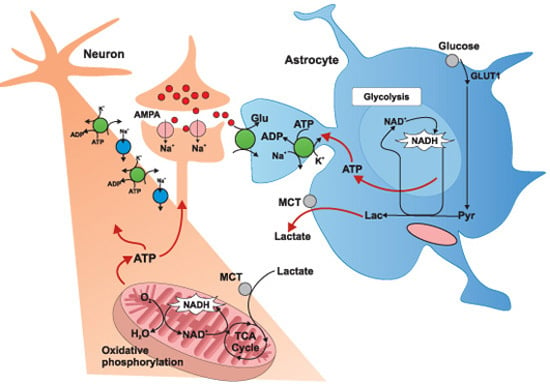 葡萄糖必须通过血脑屏障进入大脑(靠GLUT1转运蛋白);