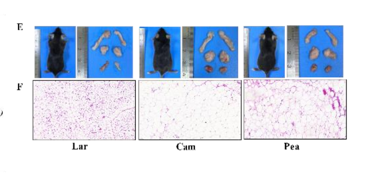 给小鼠喂食3种油脂,分别是猪油(Lard)、山茶油(Camellia seed oil)、花生油(Peanut oil),持续喂养24周。
