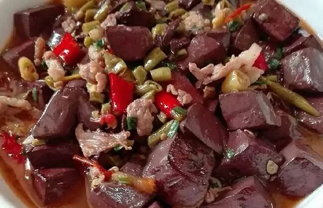 猪血,号称液体肉,蛋白质含量也很高,女生特殊情况下需要补血,猪血是最好的选择,比红糖,红枣,驴皮都要好。