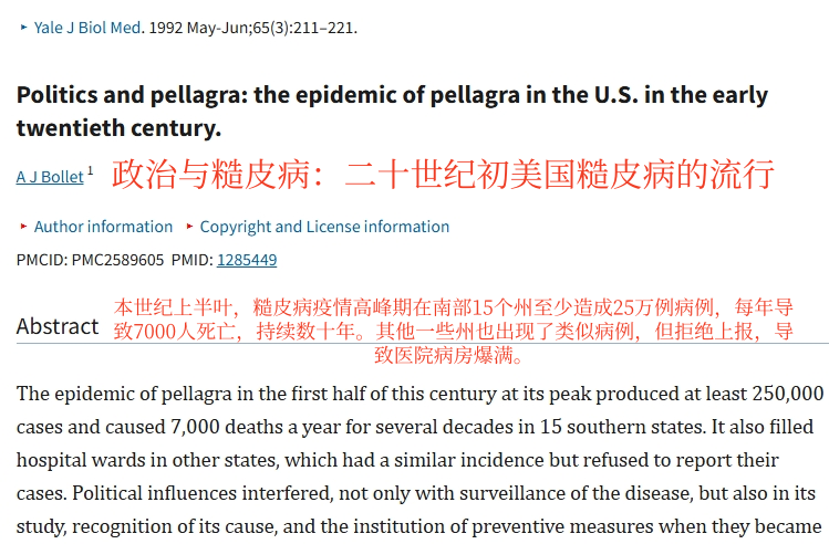 也让整个医学界形成了一种非常强的认知惯性,只要是疾病,就一定有对应的病原体。在这种背景下,糙皮病自然被归类为“传染病”。