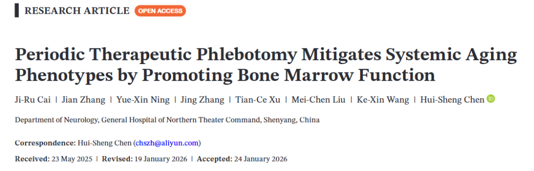 2026年,来自中国沈阳北部战区总医院神经内科陈会生教授团队,在国际衰老研究权威期刊 《Aging Cell》 发表了一项震撼研究:①