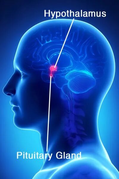 上面是下丘脑,下面是垂体