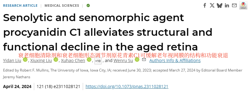 有研究表明,在老年小鼠模型中,PCC1 长期给药能够改善视网膜结构、增强视觉功能(如闪光诱发电位 ERG 信号)、减少视网膜中的衰老细胞和炎症因子。③