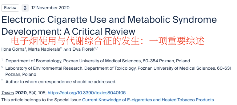 根据MDPI发表的一项研究,使用电子烟的人群,患上胰岛素抵抗和高血压的概率比非吸烟者显著升高。④
