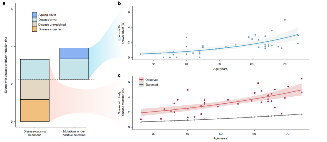但这项来自Nature的研究告诉我们,随着年龄增长,精子中某些突变会被自然放大,让它们更容易复制、扩张。