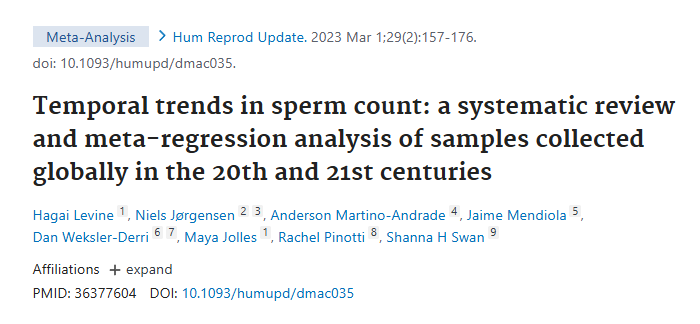 在覆盖全球的数据,包括南美、亚洲、非洲的男性,1973-2018年期间平均精子浓度下降51.6%;总精子数下降约62.3%。