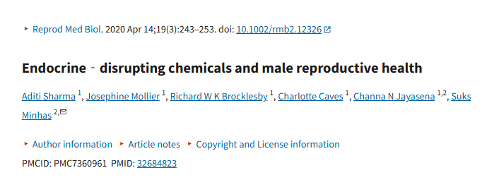 内分泌干扰物(EDCs),包括双酚A、邻苯二甲酸酯、杀虫剂和其他环境化学物质,已被证实会对男性生殖健康产生不利影响。⑦