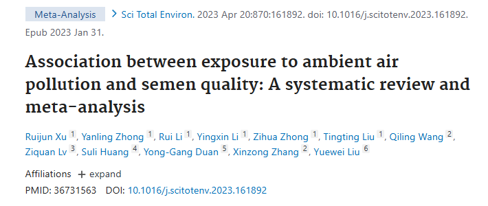 空气污染物,PM2.5/PM10/SO₂ 等,与精子浓度、总数、总/前向运动也呈负相关。⑧