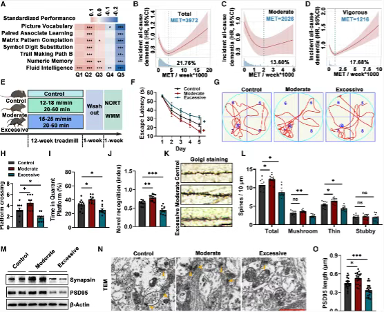 在英国生物银行超过31万人的数据中,总体力活动水平与认知障碍风险呈J型关联。