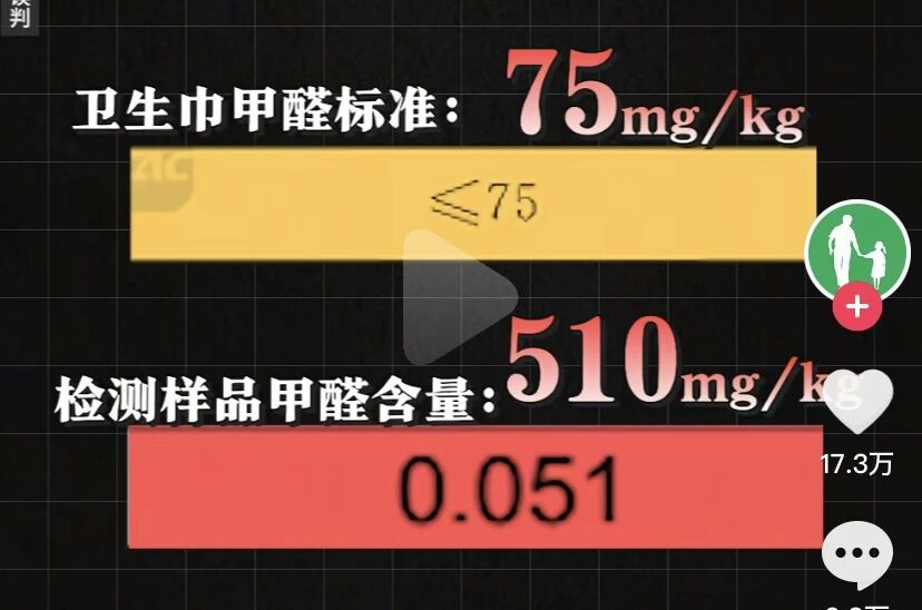 结果,有1款检出甲醛510 mg/kg,参考外阴接触的卫生巾国标≤75 mg/kg,超标近7倍;好家伙,相当于每天在用福尔马林湿敷。