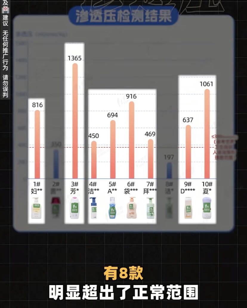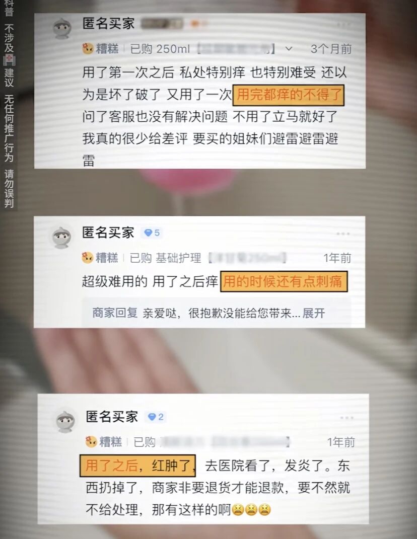 还有8款渗透压高出生理盐水3~4倍,最猛的一款达1300 mOsm/kg,等于给私处腌咸菜,评论区很多人也表示“痒、刺痛、红肿”。