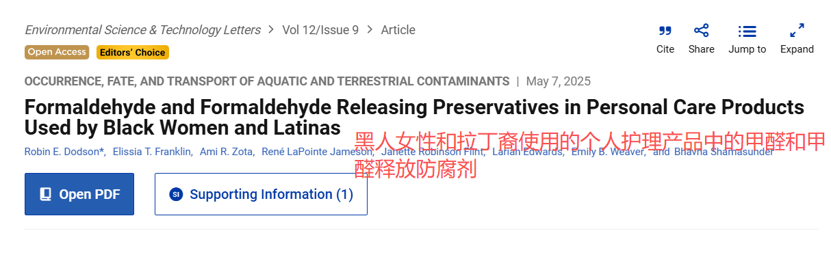 今年由 Silent Spring Institute与哥伦比亚大学等联合在洛杉矶一项样本调查中,针对 70 位黑人和拉丁裔女性使用的个人护理产品(洗发、身体乳、化妆品)分析,发现超过一半的参与者使用了含有甲醛释放防腐剂的产品。②