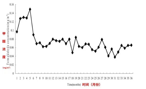 中国医科大学发现,将甲醛浓度在装修后的第 5 个月左右达到峰值,然后逐渐下降,6 个月后达到对人体相对安全的浓度,并且稳定释放。