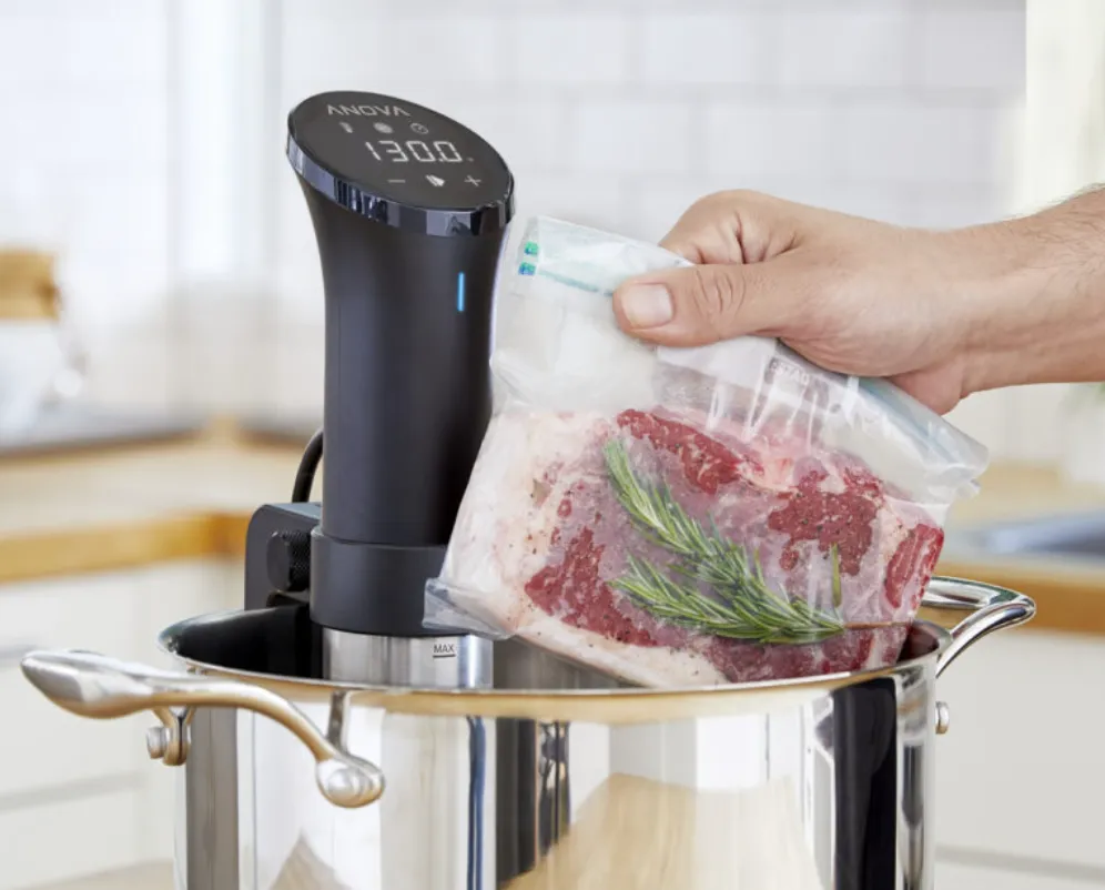 还有现在比较时髦的真空低温烹饪法,就是将肉密封在不透气的袋子里,然后在温水中水浴几个小时,一般为55-80℃,基本不会产生有害物质。