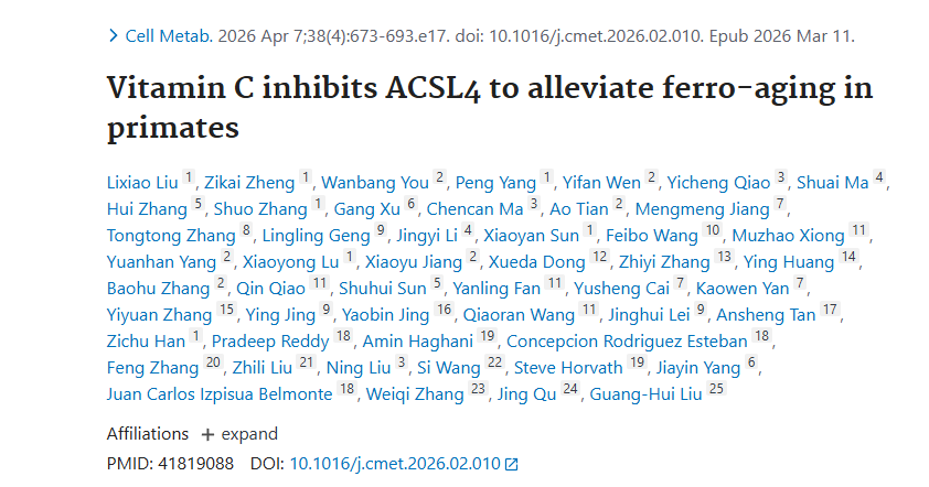 一篇Cell Metabolism的研究发现,人类和猴子体内的铁都会随年龄增加。